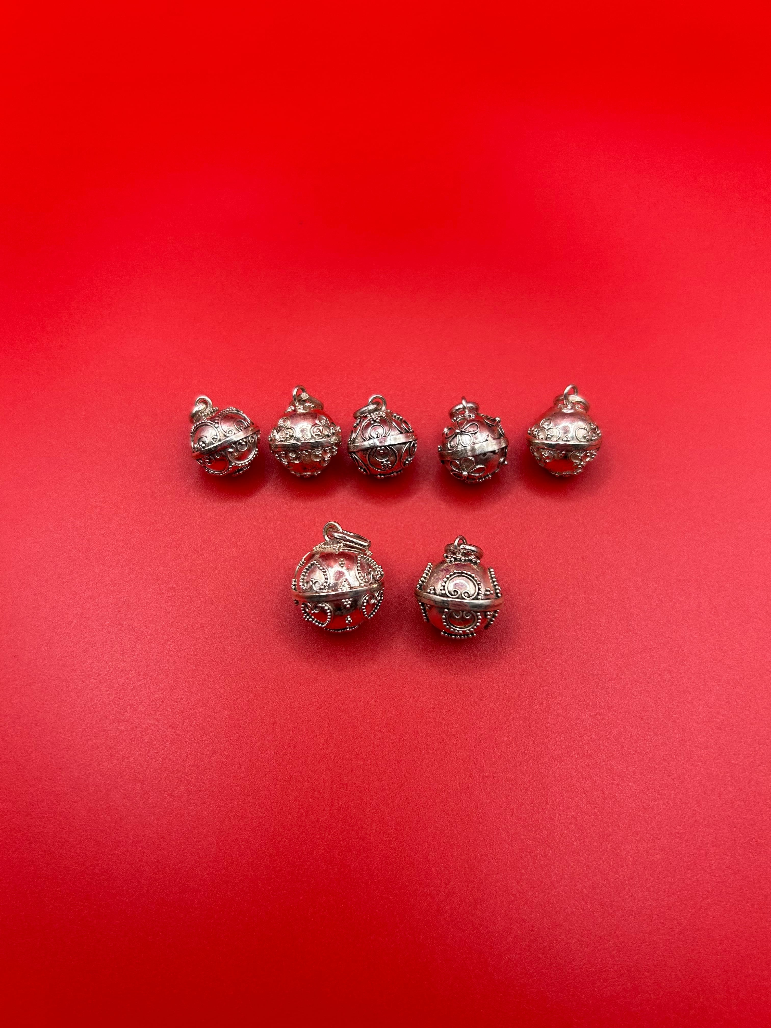 揺らすたびにシャリンと癒しの音色が響くガムランボール。銀製品の職人がピンセットでパーツを合わせそれぞれの模様を現しています。