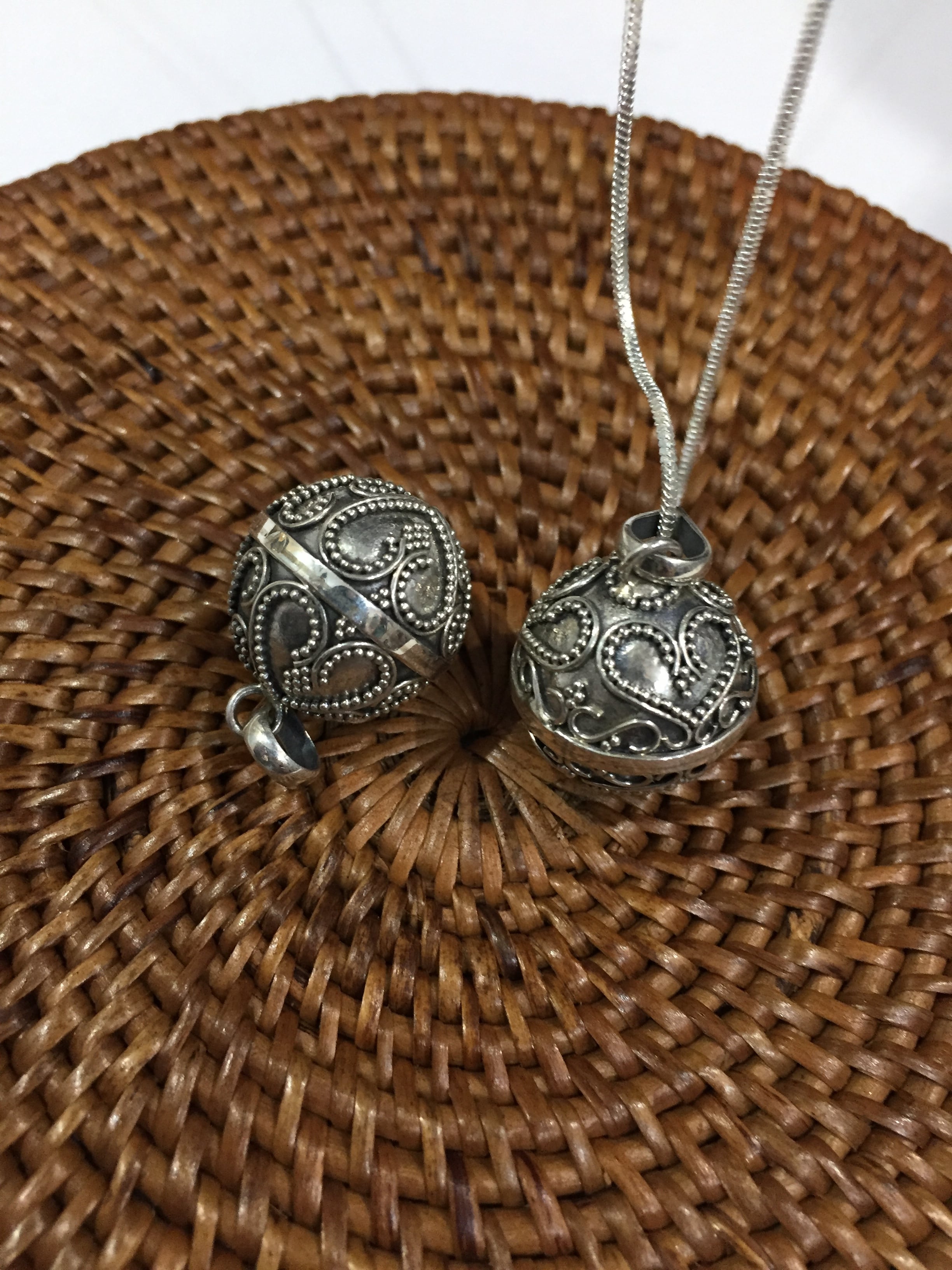 細かい細工で型取られたハート模様のガムランボールです。バリでは、オーソドックスなデザインといえるものです。