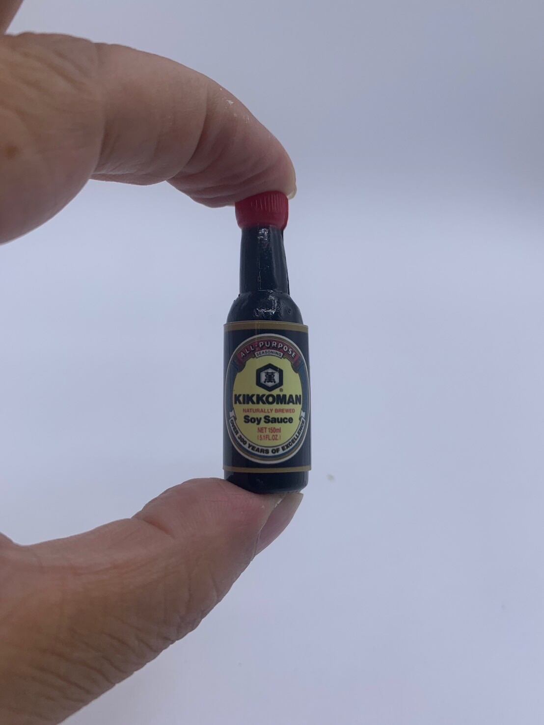 日本の食文化を象徴するキッコーマンの醤油ボトルをモチーフにした、魅力的なハンドメイドのミニチュアマグネットです。