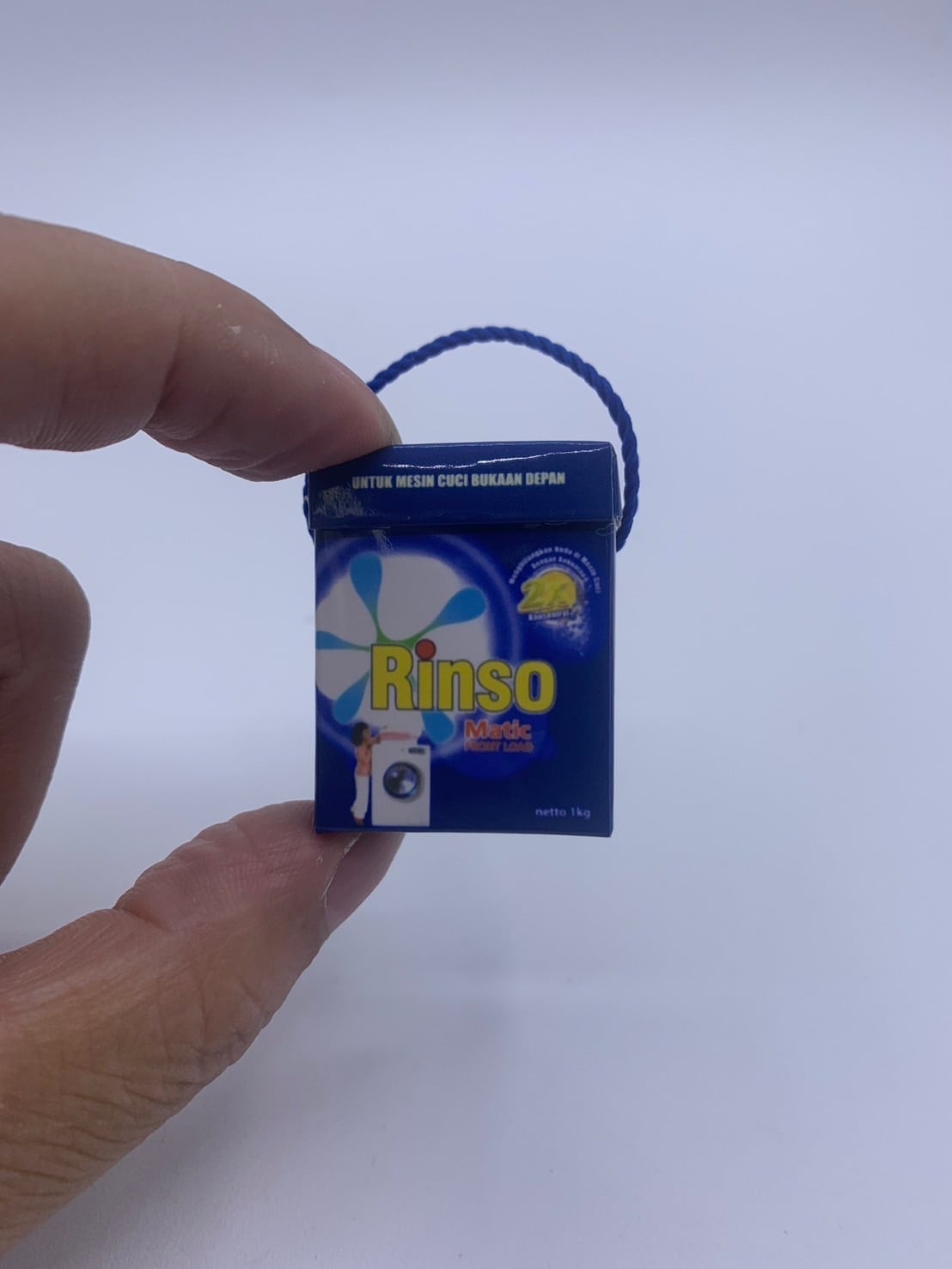 まるで本物の洗濯洗剤のパッケージをミニチュア化したかのような、かわいらしいデザインが特徴です。このマグネットは、冷蔵庫や掲示板をおしゃれに彩り、毎日の家事を少し楽しくしてくれる存在感抜群のアイテムです。